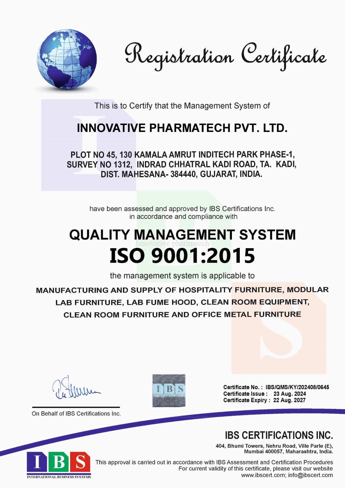 Innovative Pharmatech Pvt. Ltd. operates under the ISO 9001:2015 certification with state-of-the-art manufacturing facilities based in Gujarat State’s western region. Utility valves became the first production item of the company which grew into a diverse product line including both lab furniture and clean room furniture. The company devotes continuous effort to produce superior quality market products through qualified staff members from its R & D Department. Innovative Pharmatech Pvt. Ltd. developed another business initiative to provide user-friendly Fume Hood systems with simple repair methods and optimized solutions for customer needs in Fume Hood and Modular Lab Furniture products.