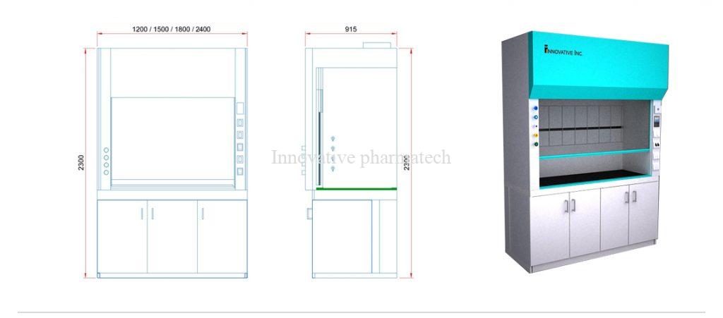 Laboratory fume hoods are a type of ventilation system with the primary function is to exhaust chemical fumes, vapors, gasses, dust, mist, laboratory hoods, SS fume hood, and aerosol. Fume hoods also serve as physical barriers between reactions and the laboratory, offering a measure of protection against inhalation exposure, chemical spills, run-away reactions, and fires. Innovative Pharmatech is an expert leading laboratory fume hood manufacturers in Ahmedabad, India.