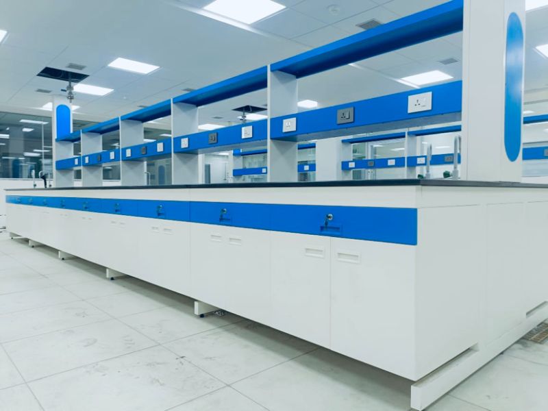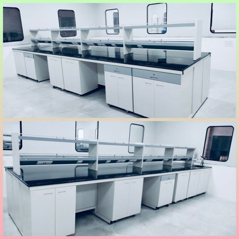 Innovative Island benches are manufactured with M. S. Frames, SS 304, G. I Sheets & Aluminum Sections duly powder coated. The table top is made of Granite/ epoxy resin or phenolic resin which resists heat, water, most chemicals, and corrosion. Partitions of the shelf make the equipment and tools easy to display. Meanwhile, the laboratory instrument table leads convenience for people on both sides to get things on the shelf. The modules are so designed that they can be fitted either to the pedestal system or the flexible system with considerable ease. Drawers & Shutters are with S.S. or Brass, Aluminum (Pull type/Flush type) handles.