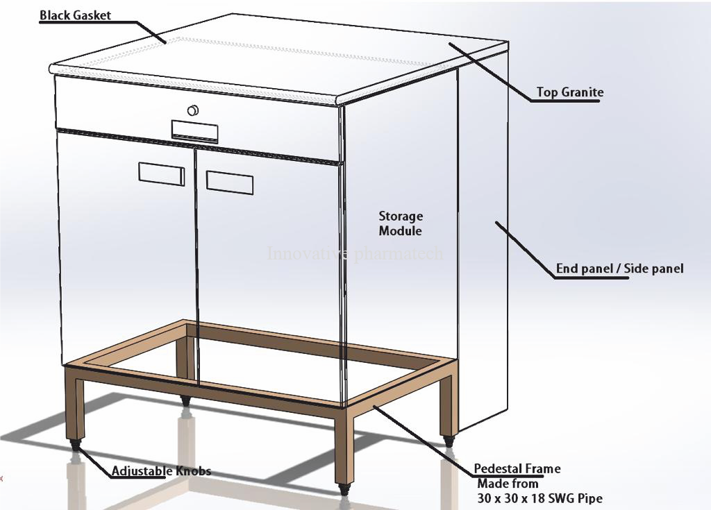 These laboratory workstations are available in 2 heights of 900mm (Standing) and 750mm (Sitting) in metallic construction designed to have completely flexible modular system. Each module will have independent base frame/skirting. Necessary leg spaces and keyboard trays shall be provided as per requirement and rear portion of the leg spaces will be covered with easily removable type enclosure panel for easy access for maintenance.